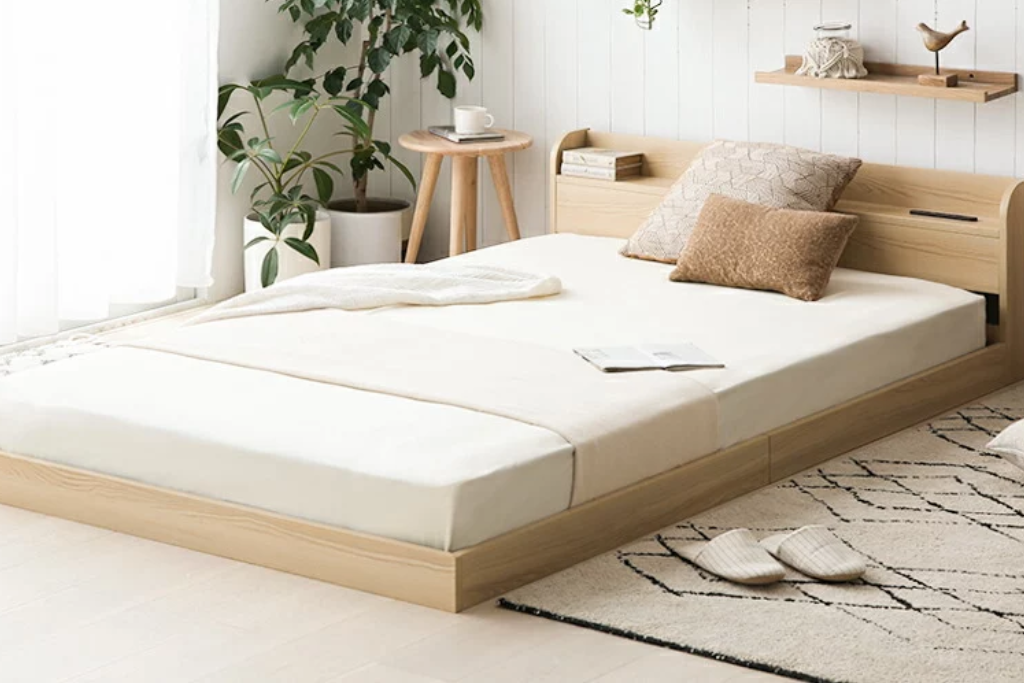 [S/SD/D] 余白を楽しむローベッドフレーム 天然木調 ステージベッド 2口コンセントタイプ