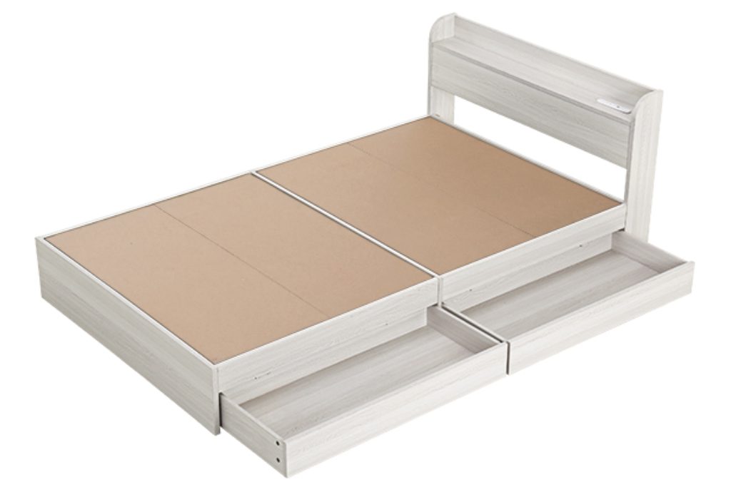大容量収納と機能性を備えた収納付きベッドです。引き出し約322Lに加え床板下も活用可能。USB・2口コンセント付きで利便性も◎