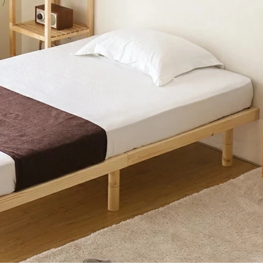 天然木パイン無垢材を使用したすのこベッド。香りと風合いが魅力で通気性も抜群。脚は着脱可能で高さ調整もでき、収納やローベッドにも◎