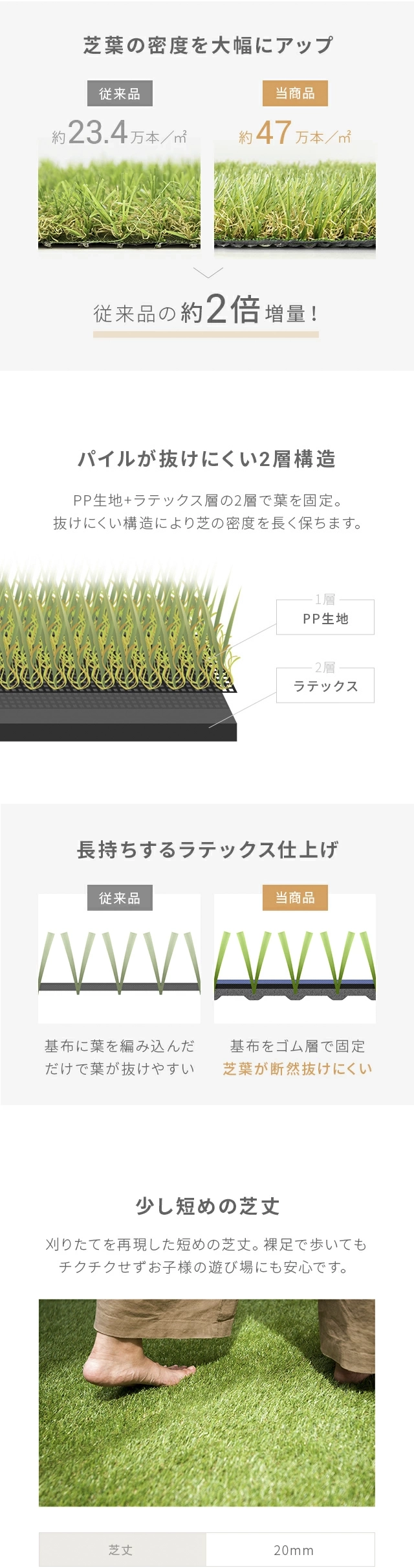 リアル人工芝 超高密度+静電気防止 高耐久タイプ・質感を追求 芝丈20mm 2×10m