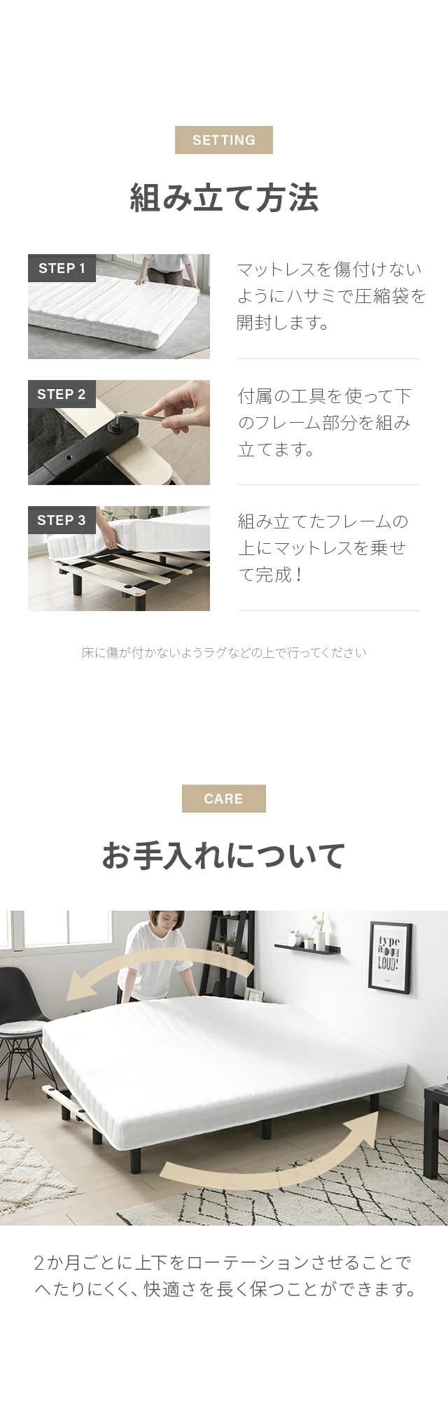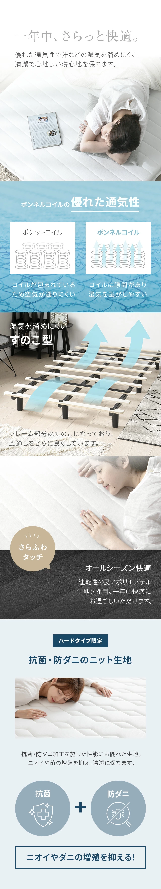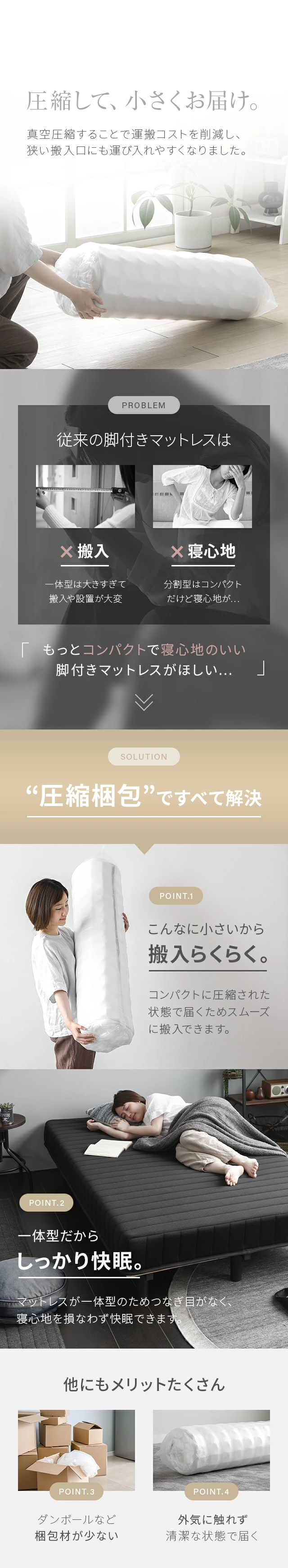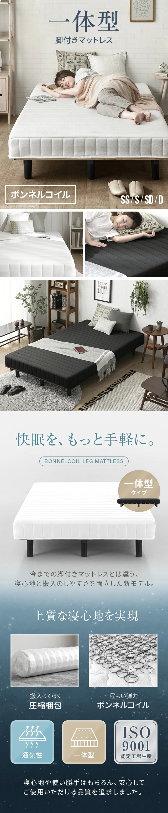 [SS/S/SD/D/Q] 脚付きマットレス ボンネルコイル やさしい肌触り コンパクトサイズで届く 一体型