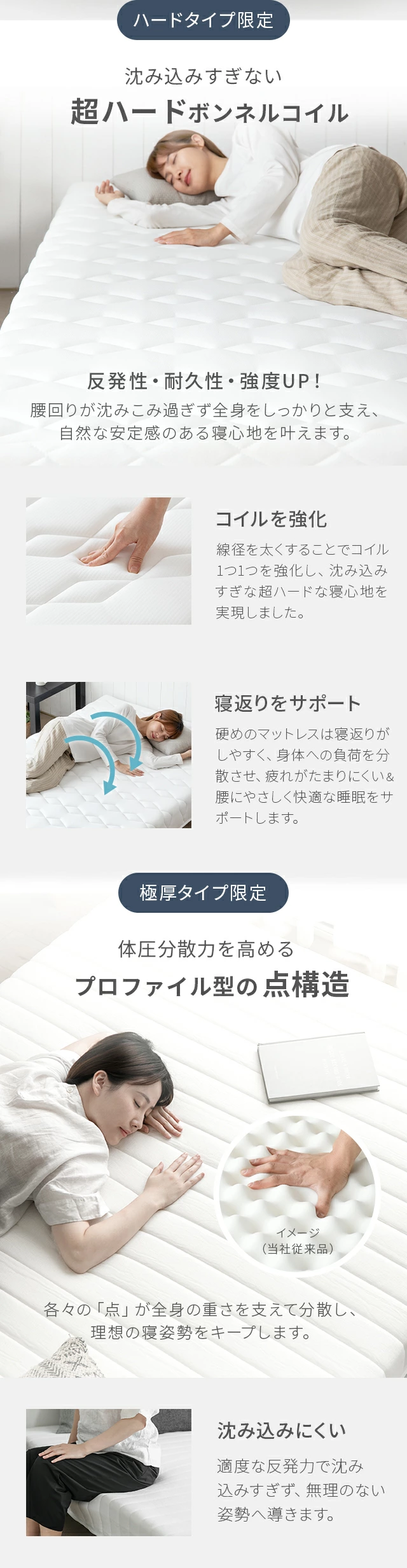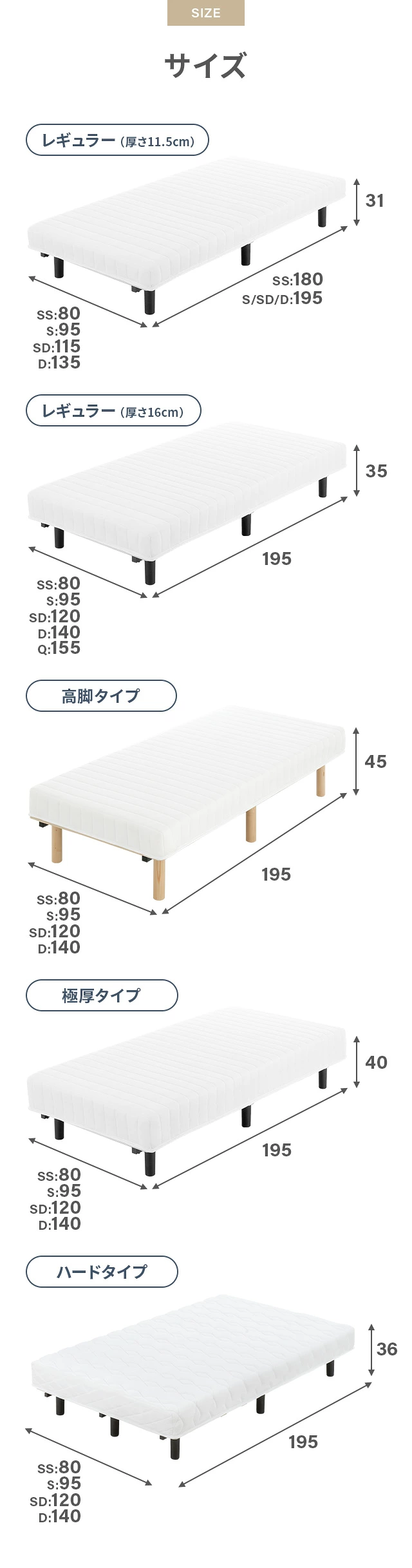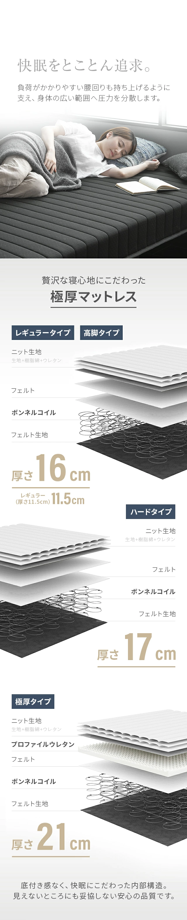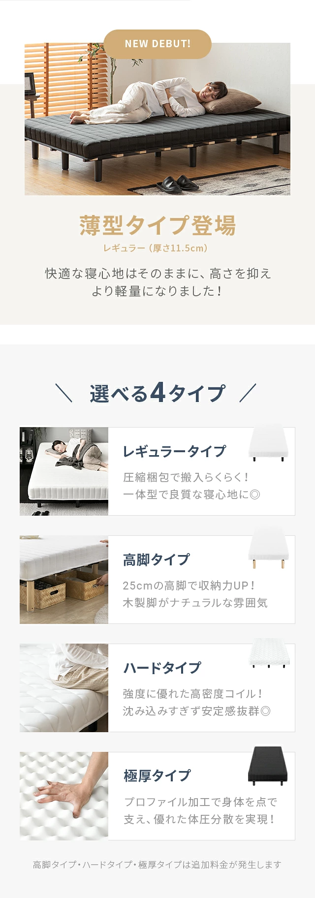 [SS/S/SD/D/Q] 脚付きマットレス ボンネルコイル やさしい肌触り コンパクトサイズで届く 一体型