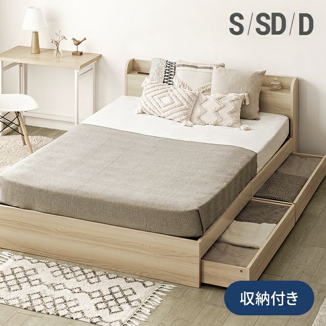 [S/SD/D・大容量収納] USB+コンセント機能付きベッド 超極厚マットレス付き
