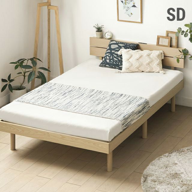 [セミダブル] すのこベッド 宮付きタイプ 2口コンセント
