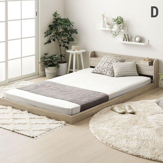 シンプルでスタイリッシュなデザインと、コンセント&USBポートを装備した充実の機能。床に近いベッドは落ち着きがあり、開放的な空間を生みます。
