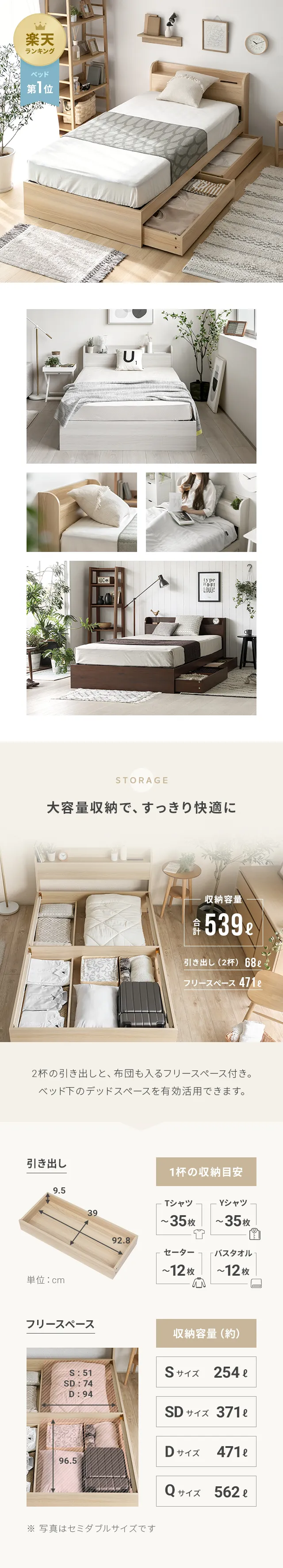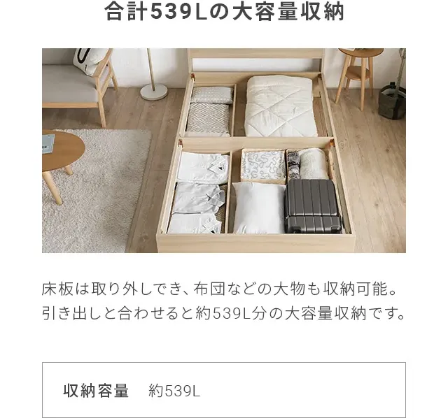 広々と使えてとても満足しています。収納スペースもたくさんあり、毛布など幅を取るものも問題なく収納できます。お部屋がすっきりし、使い勝手も良いので買って良かったです。