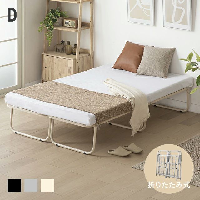 収納や移動に便利な折りたたみ式 サッとコンパクトになる折りたたみ式。使わない時の収納や、引っ越しなどの移動も手軽な優れモノです。 展開時 横幅 奥行き 高さ S 約97.5㎝ 約195㎝ 約34㎝ SD 約120㎝ D 約140㎝ 折りたたみ時 横幅 奥行き 高さ S 約98㎝ 約12㎝ 約97㎝ SD 約121㎝ D 約141㎝