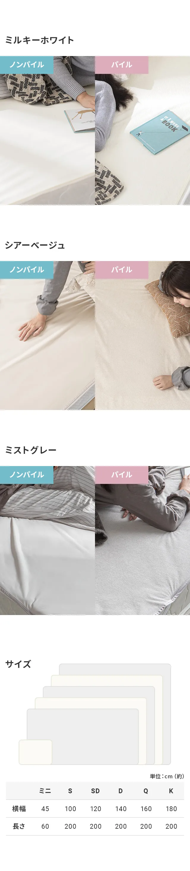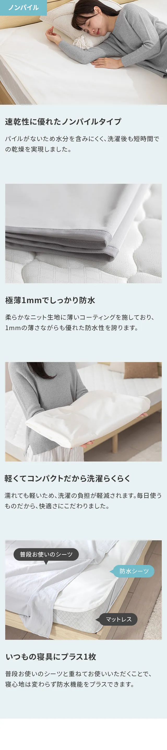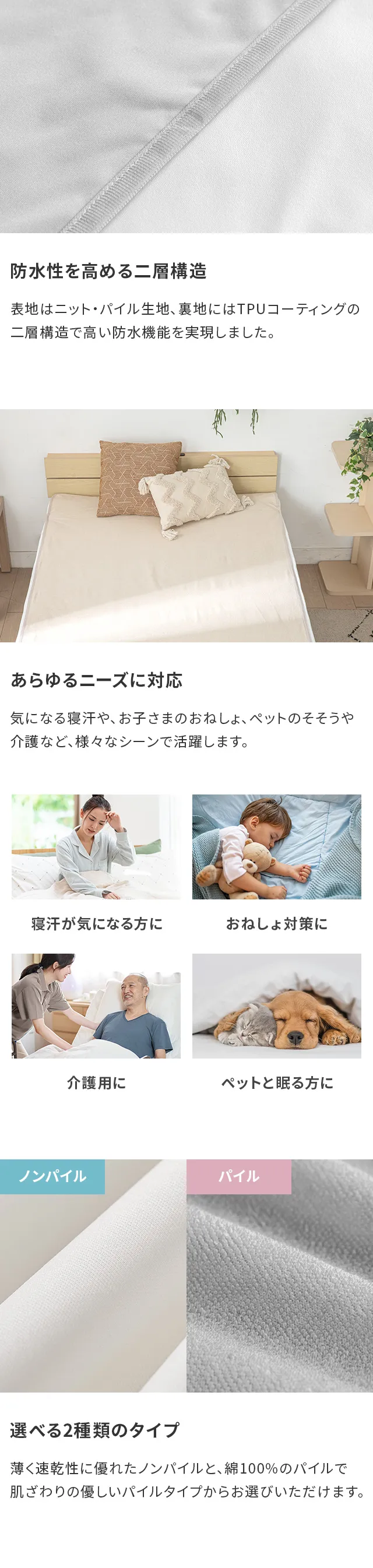[ミニ/S/SD/D/Q/K] 防水シーツ ノンパイル