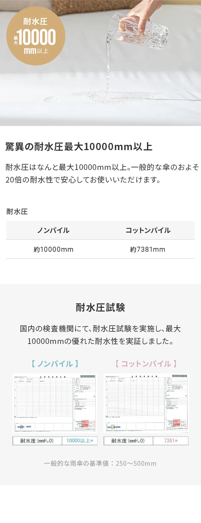 表地:綿パイル生地(綿100%)+防水TPUボーディング