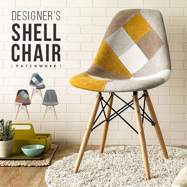 【3ヵ月保証】 【送料無料】シェルチェア リメイク リメイク 木足 パッチワーク シェルチェアー 椅子 木脚 木製