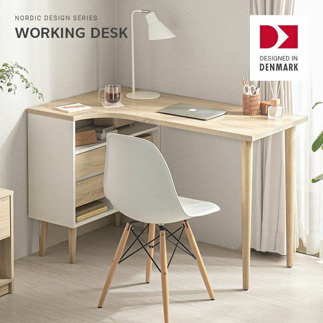 北欧 デンマークデザイン おしゃれなデスク 白家具 白 収納付き 木製 おしゃれ 書斎 学習机 デスク