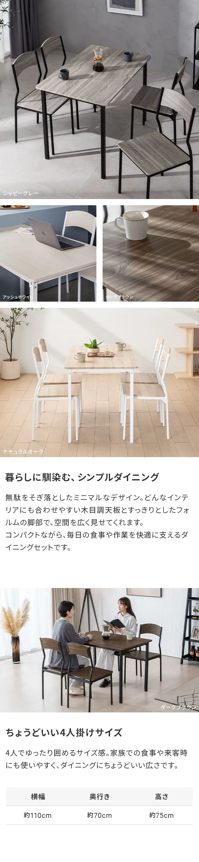 ダイニングテーブルセット 4人掛け ダイニングセット 5点セット ダイニングテーブル ダイニング 4人用 4人 横幅110cm コンパクト テーブル セット 食卓テーブル 食卓 長方形 木目調 北欧風 リビング