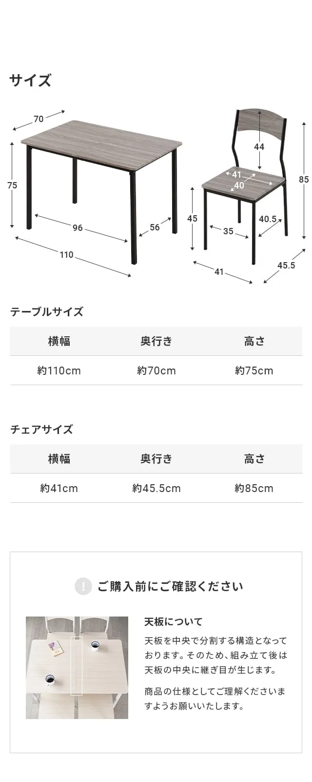 テーブル:幅110×奥行き70×高さ75cm