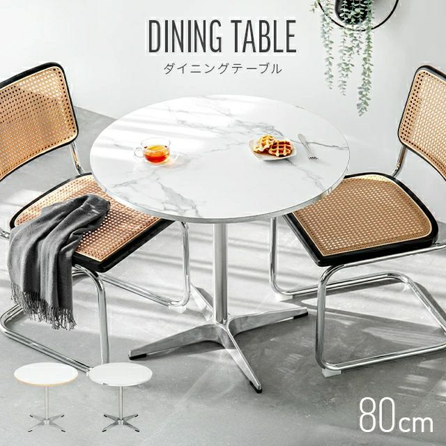 幅80cm ラウンドダイニング 大理石調 無地ホワイト 丸テーブル 2人掛け