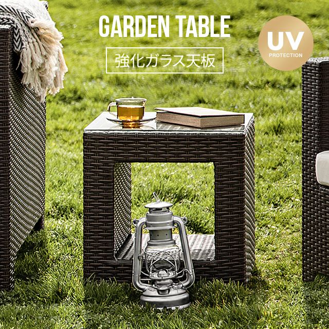 【3ヵ月保証】 ラタン調 屋外用 正方形 ガラステーブル サイドテーブル ローテーブル ガーデンファニチャー アジアン家具 おしゃれ 人工ラタン 42×42cm ラタン調ガーデンテーブル
