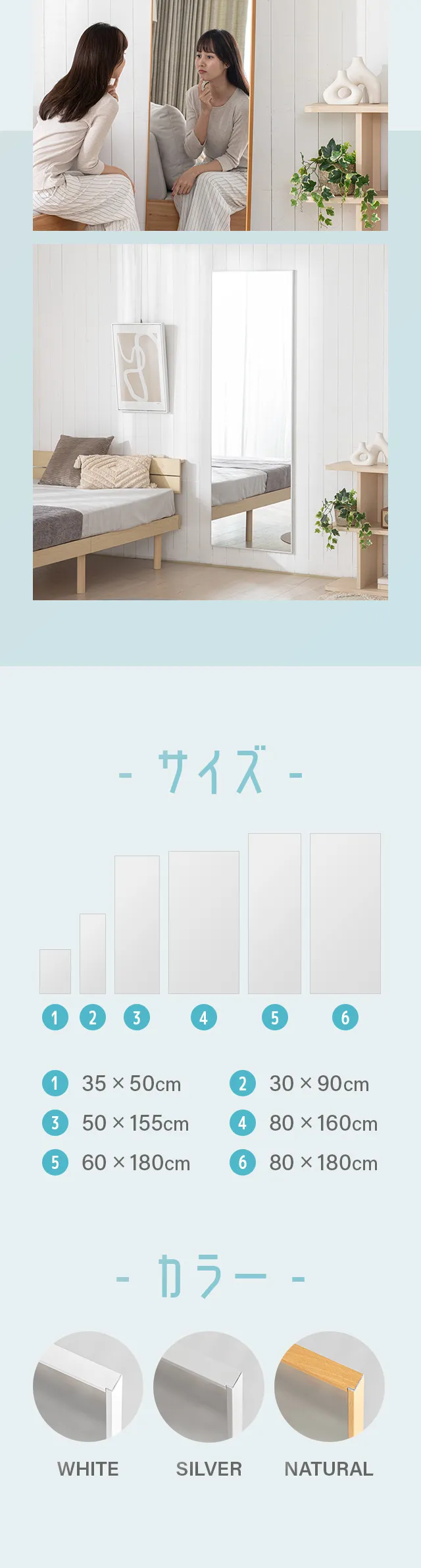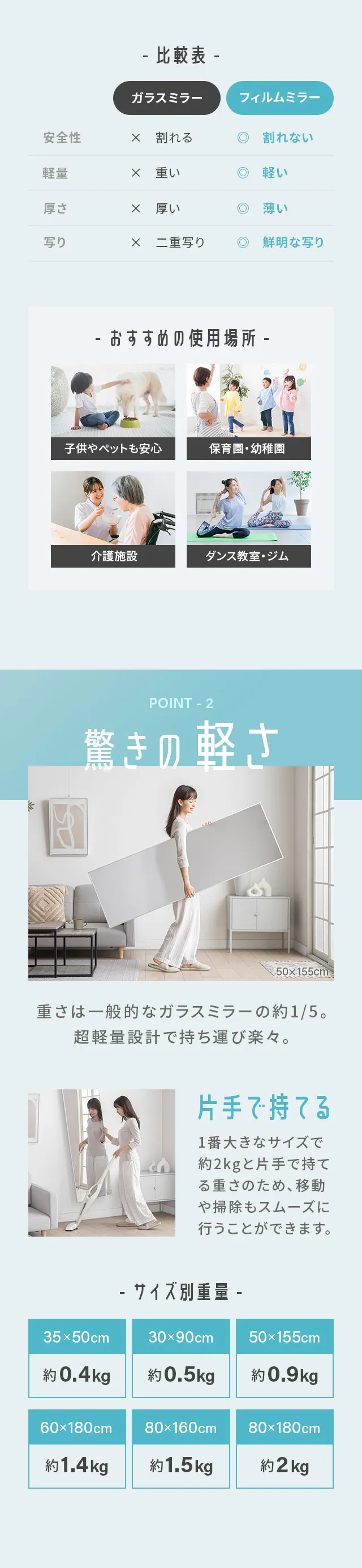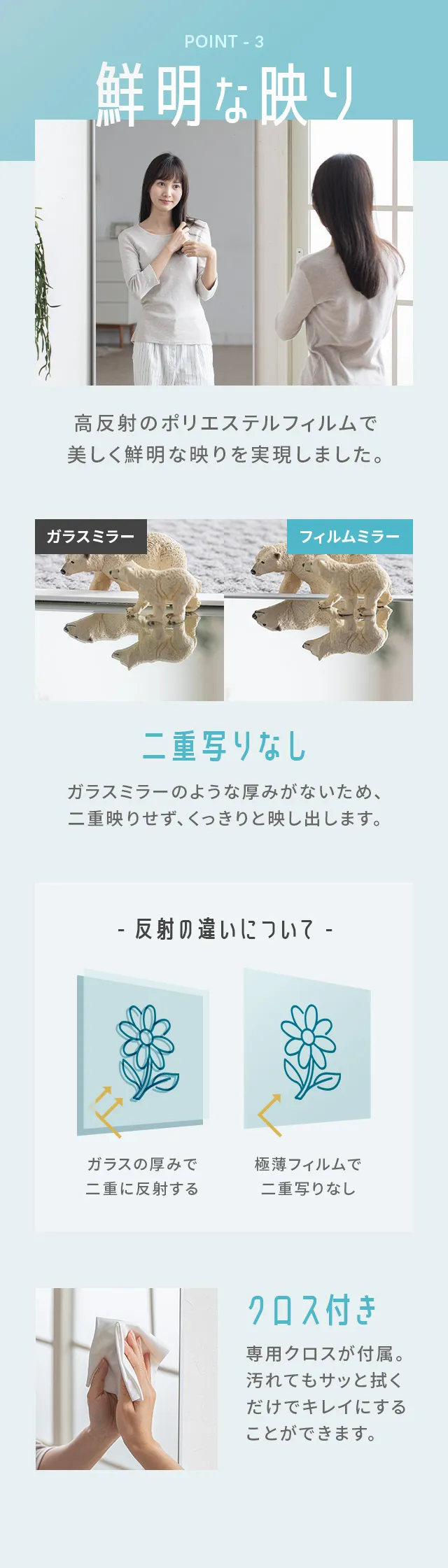 [選べる6サイズ] 割れない鏡 フィルムミラー 軽量