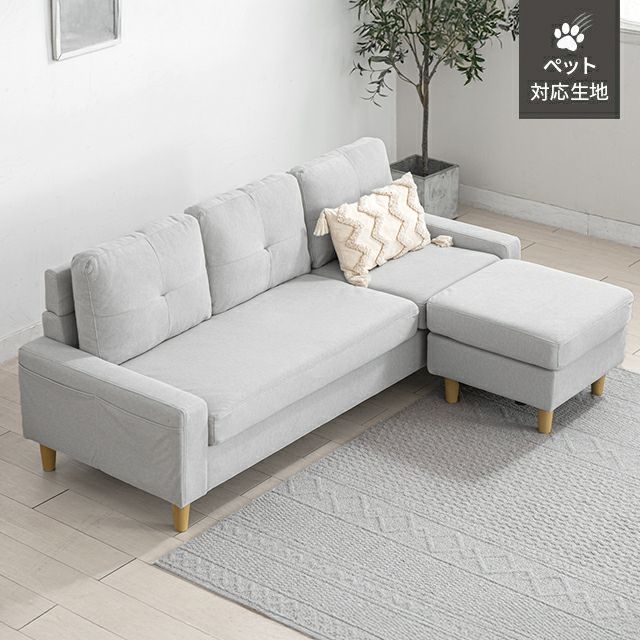 [幅183cm・傷に強いペット対応生地] 3人掛けカウチソファ 組換え可能 L字型 北欧デザイン
