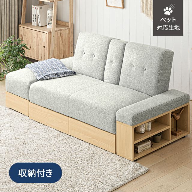 [幅165/209/260cm] 収納付き3人掛けソファ メランジタイプ