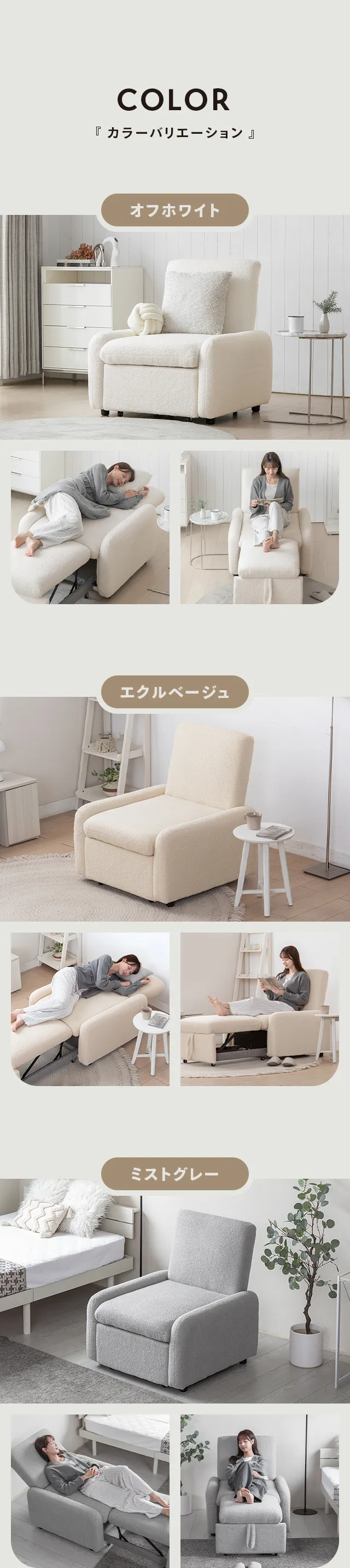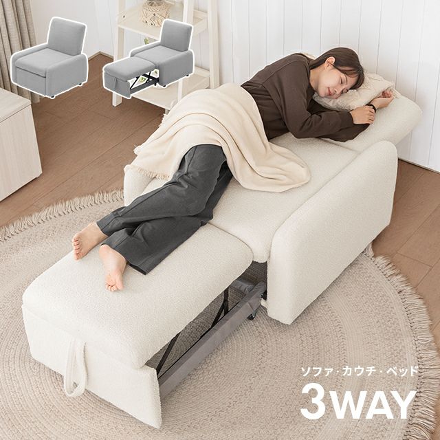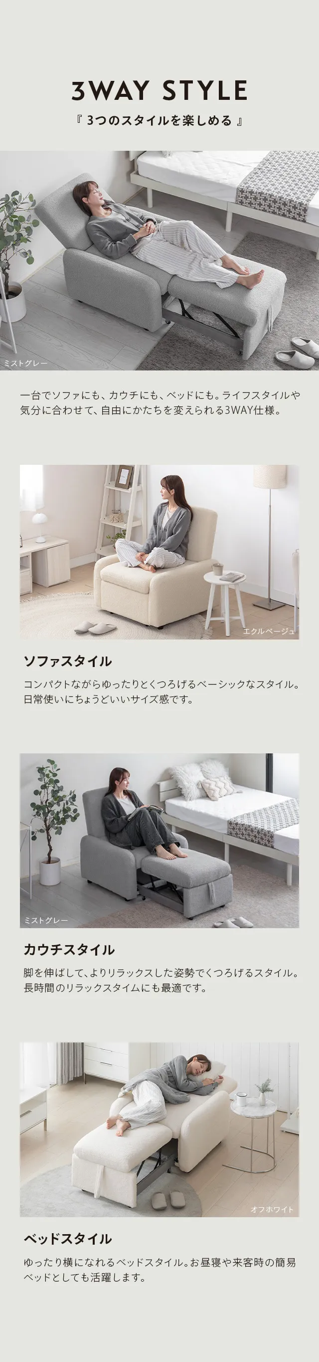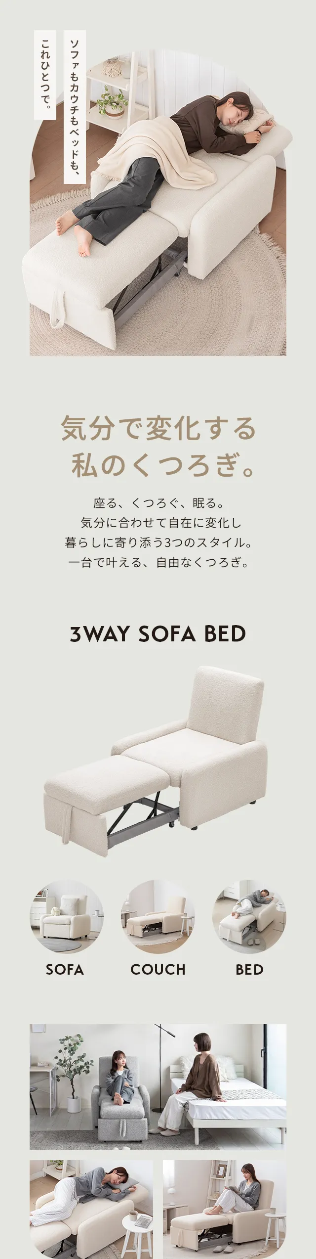 [幅82cm] 1人掛け 3WAYソファベッド ワンタッチで切り替え