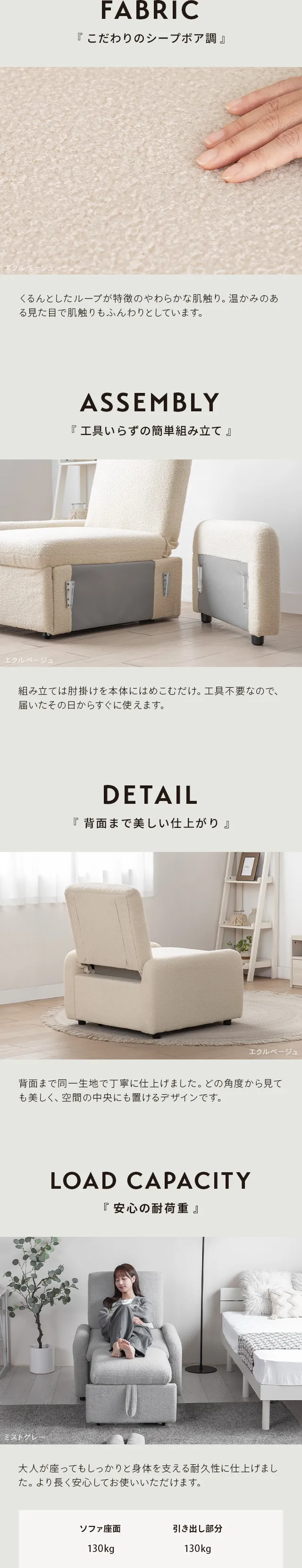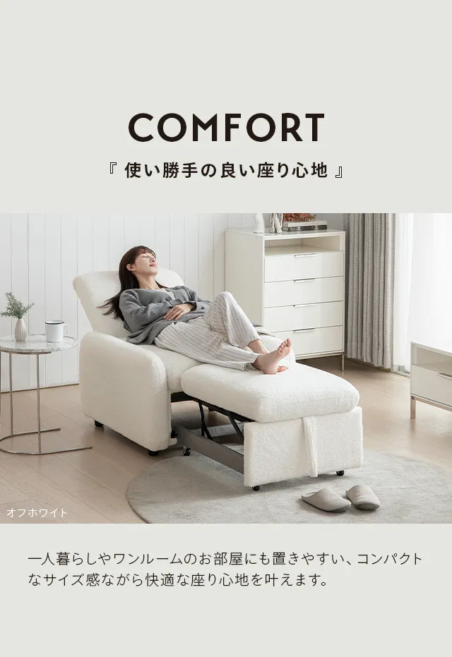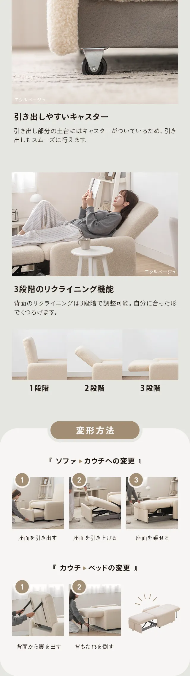 [幅82cm] 1人掛け 3WAYソファベッド ワンタッチで切り替え