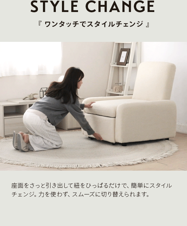 ワンタッチ引き出し ローソファ フロアソファ リクライニングソファ リクライニングソファー ワンタッチ 新生活 模様替え 引越し 3WAY 小さい 小さめ