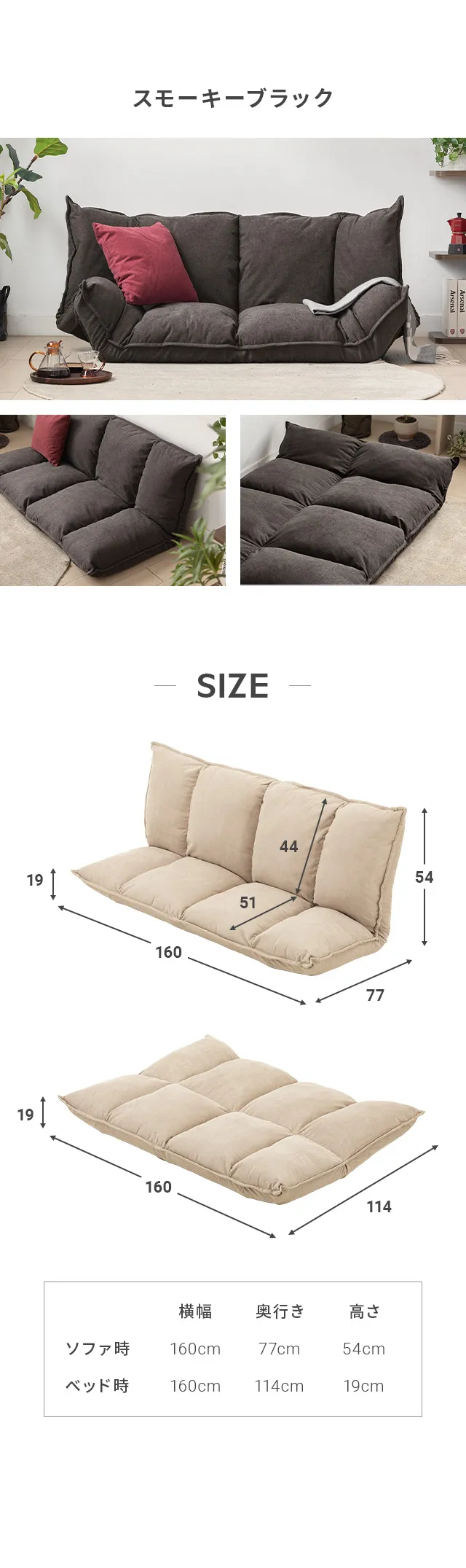 [幅161cm・シープボア生地] 2人掛けフロアソファ 座椅子タイプ リクライニング