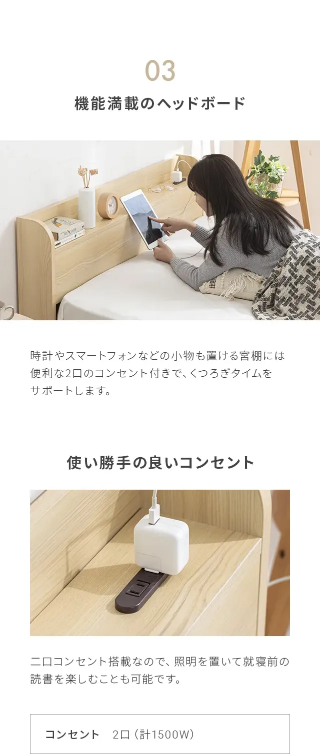 [クイーン・大容量収納] コンセント機能付きベッド 収納左右組み換え可能