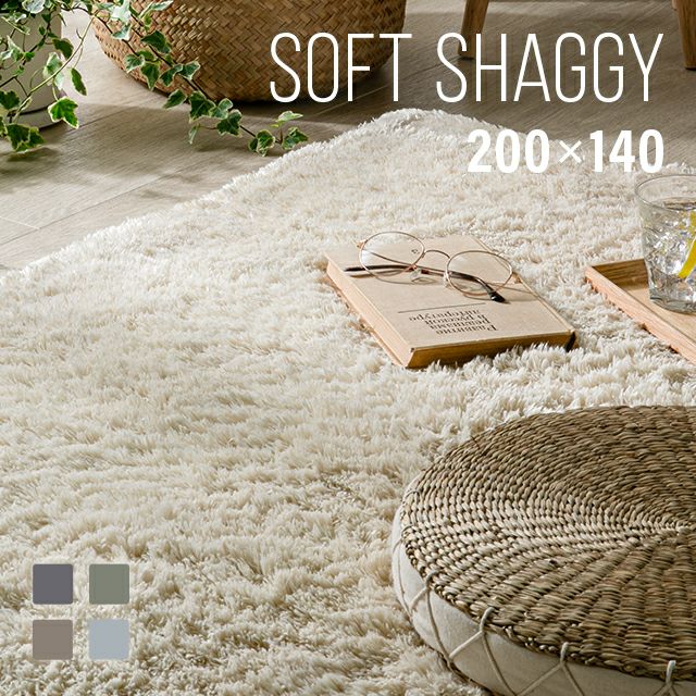 シャギーラグ 長方形 200×140cm 洗える 防音 防ダニ 抗菌防臭 滑り止め付き