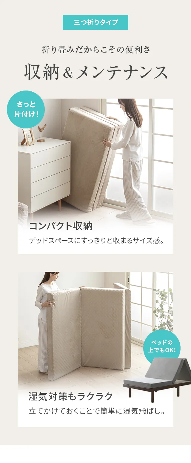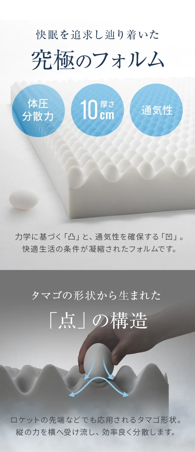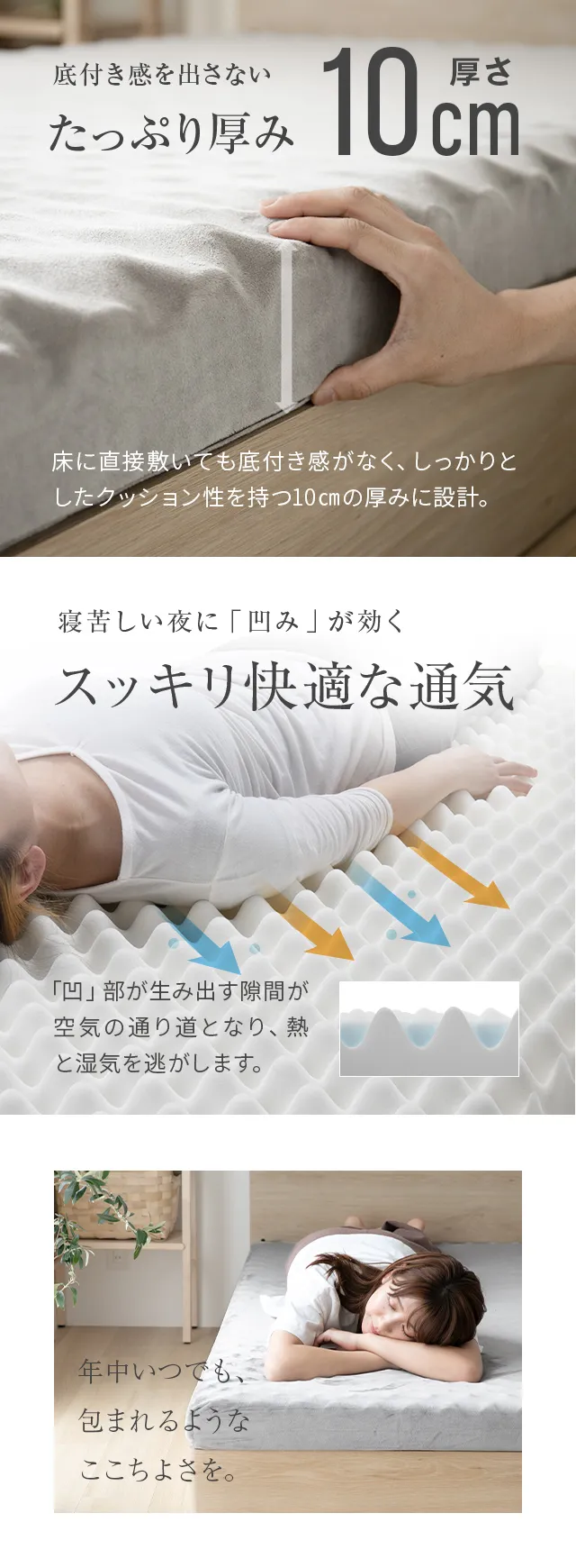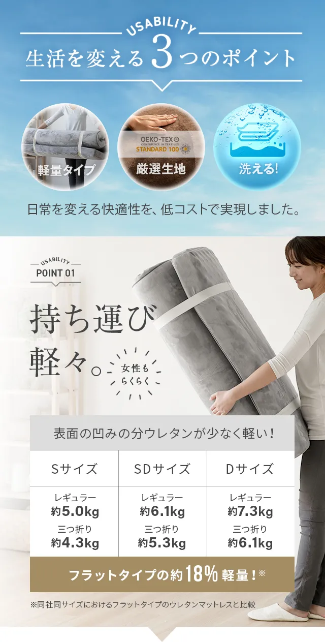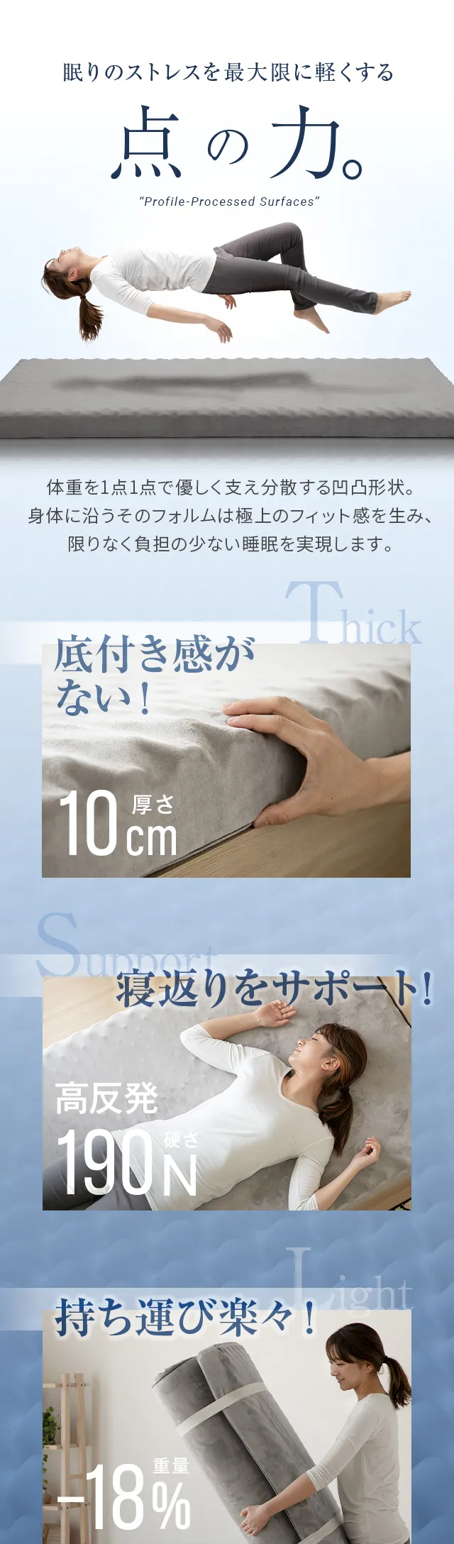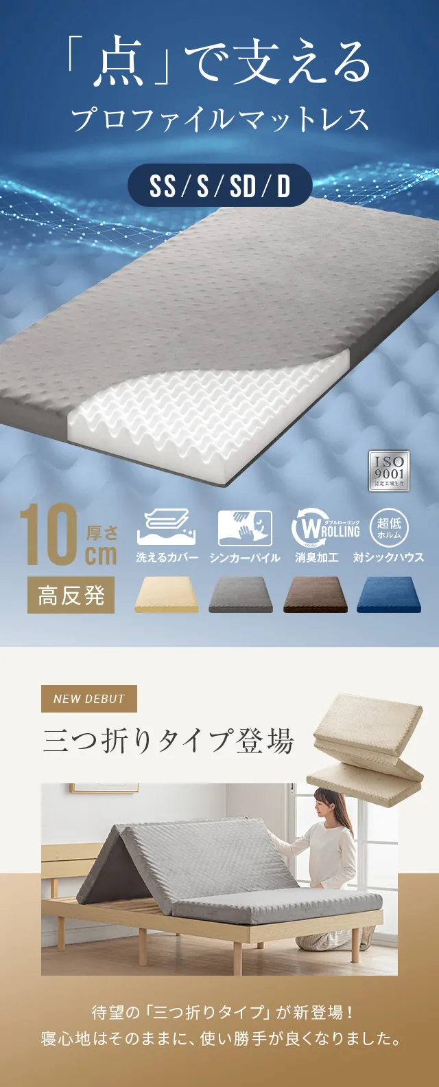 [SS/S/SD/D] 高反発マットレス 体圧分散プロファイル加工 厚さ10cm 三つ折り