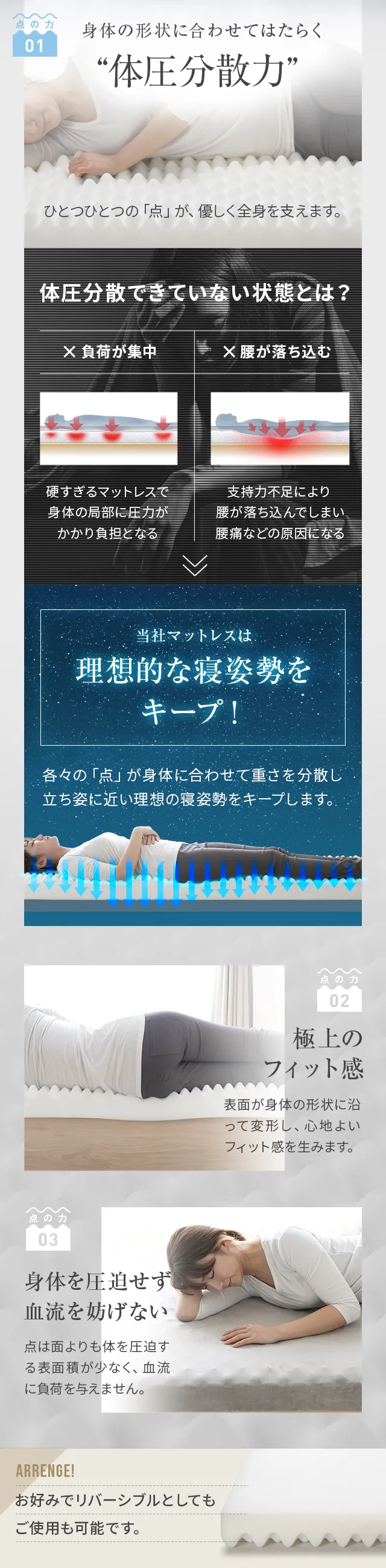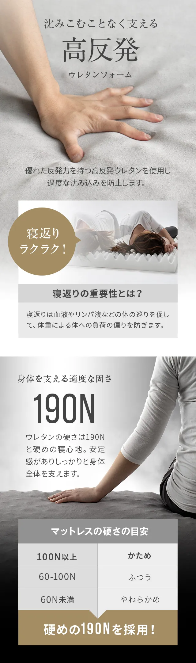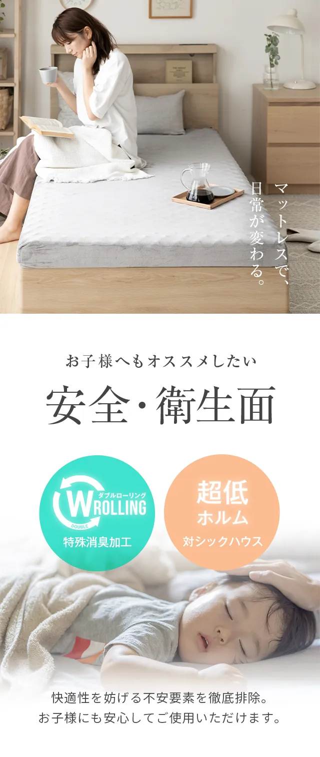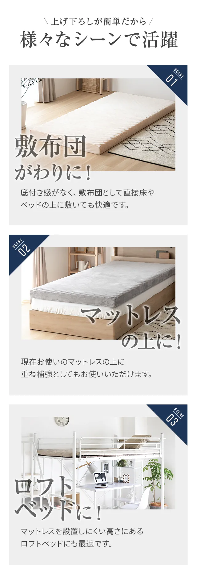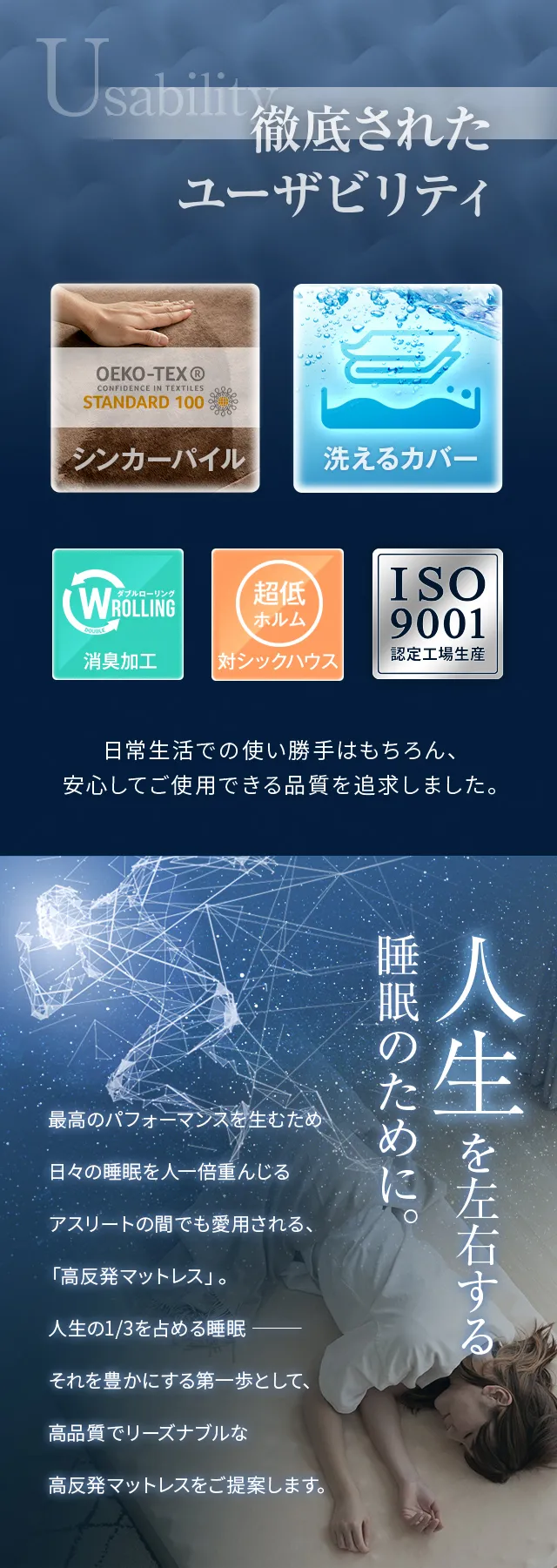 [SS/S/SD/D] 高反発マットレス 体圧分散プロファイル加工 厚さ10cm 三つ折り