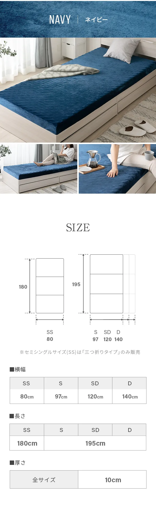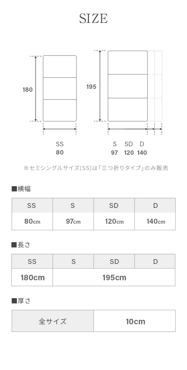 セミダブル:約 幅120×奥行き195×高さ10cm