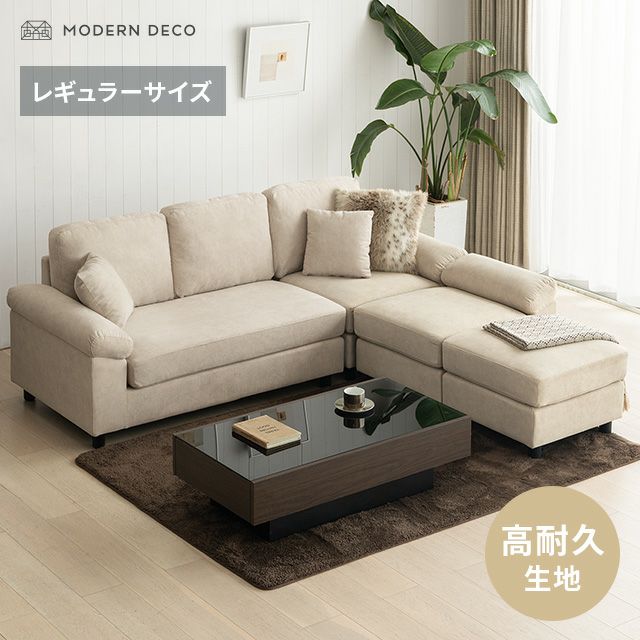 [幅202cm] レイアウト自由 3人掛けカウチソファ 傷に強いペット対応生地