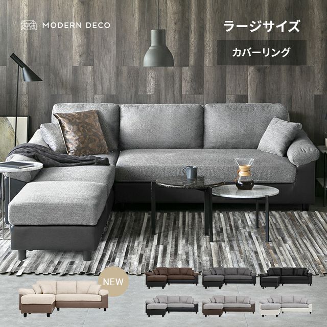 [幅239cm・傷に強いペット対応生地も] レイアウト自由 3人掛けカウチソファ ラージサイズ