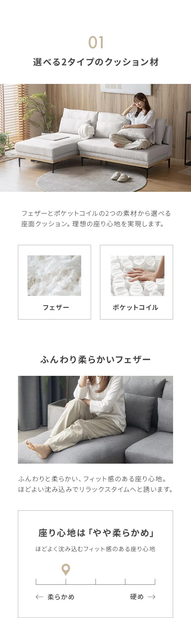 硬めが好きなのでポケットコイルのタイプを選択しました!めちゃくちゃ早く届いたのですぐ設置できました♪座り心地も大満足です