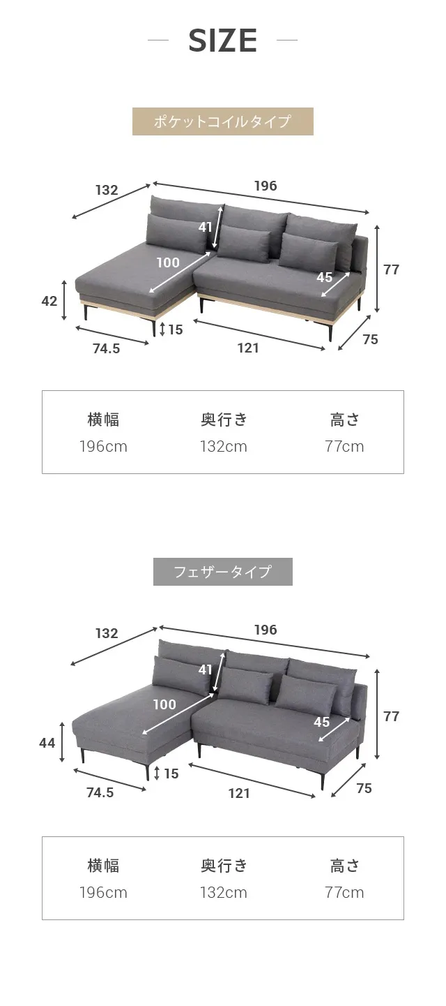 カウチ:約 幅74.5×奥行き132×座面高さ77cm