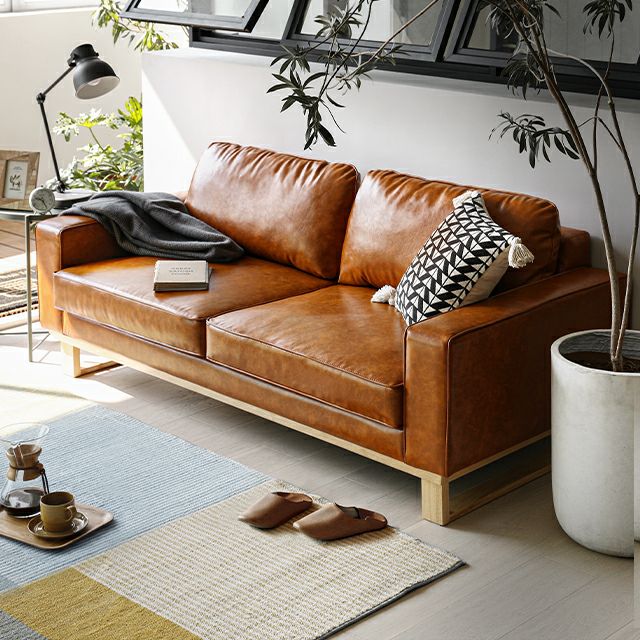 [幅183cm] 3人掛けレザーソファ 木脚 2人掛け ヴィンテージ風 スクエアフォルム