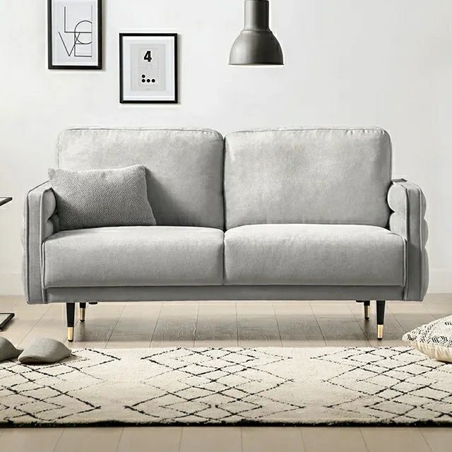 コンパクトで可愛いソファです! 脚が黒い鉄で金のラインが入っているのも可愛いです。