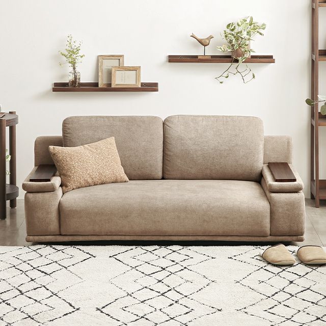 [幅135cm] 2人掛け肘掛け収納付きフロアソファ