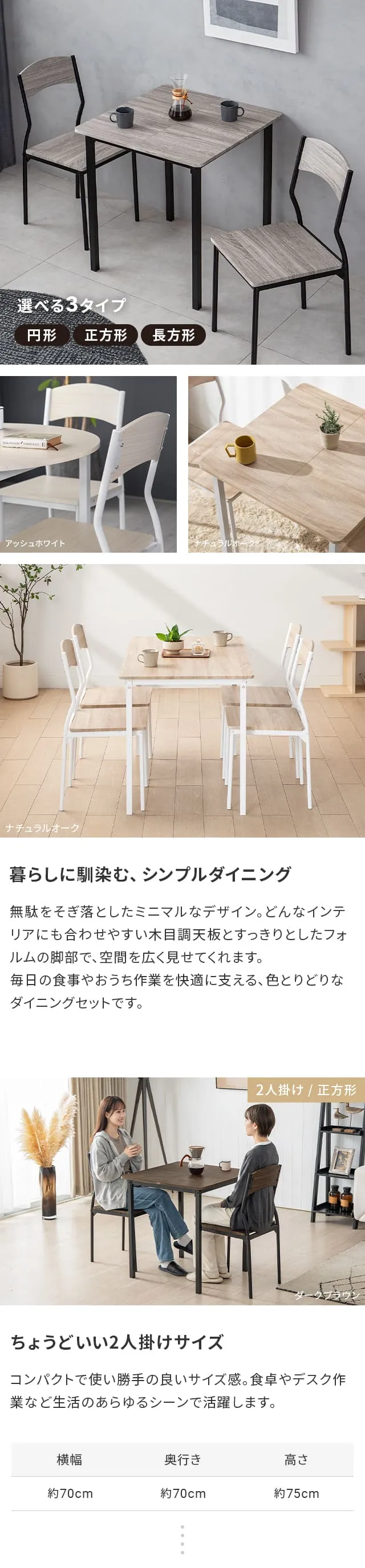 ダイニングテーブルセット 4人掛け 2人掛け ダイニングセット ダイニングテーブル 3点セット 5点セット ダイニング 2人用 4人用 2人 4人 横幅70cm 横幅110cm コンパクト テーブル セット 正方形 長方形