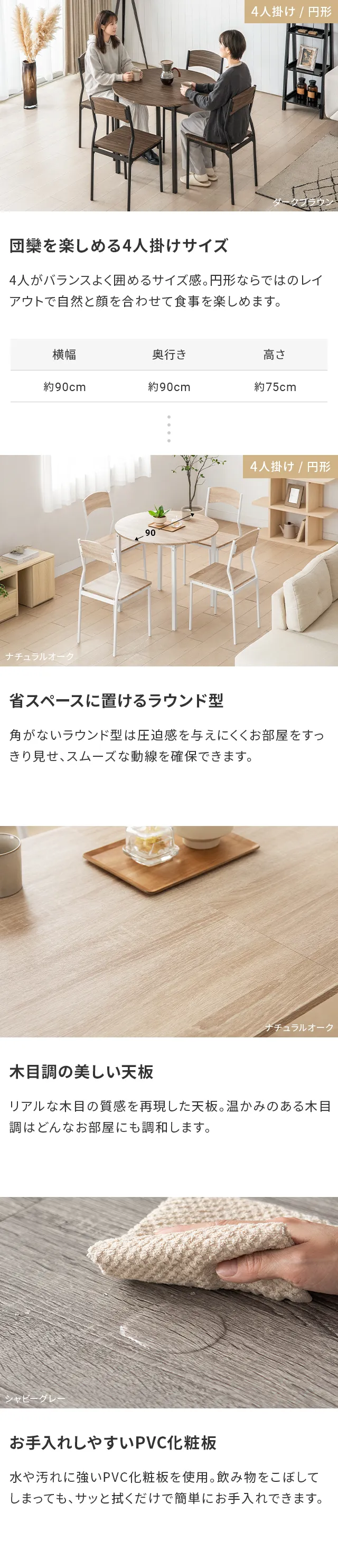 テーブル(円形):幅90×奥行き90×高さ75cm
