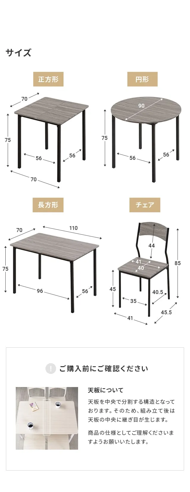 天板:合成樹脂化粧繊維板(PVC貼り)
