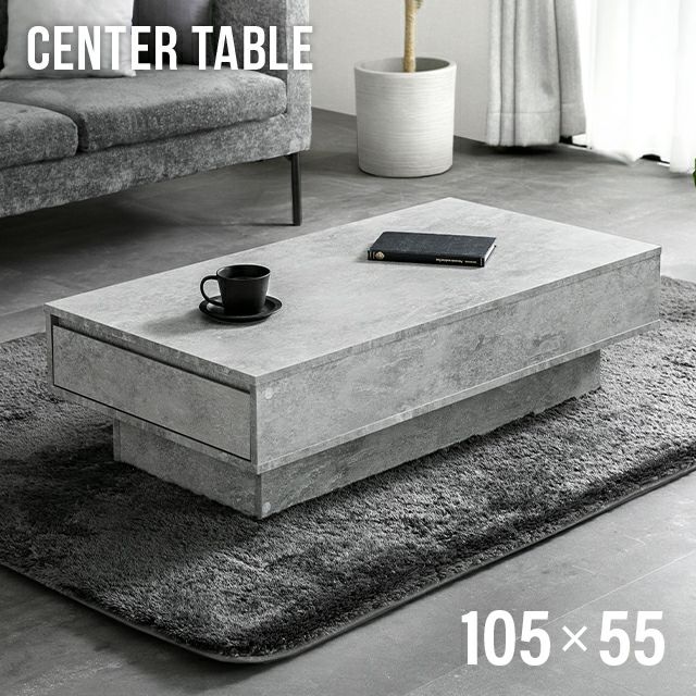 テーブル センターテーブル 幅105cm 奥行55cm 引き出し 収納 モルタル調 机 ローテーブル リビングテーブル デスク 収納テーブル 長方形 収納付き 引出し付き 一人暮らし 作業台 テレワーク デスクワーク 新生活