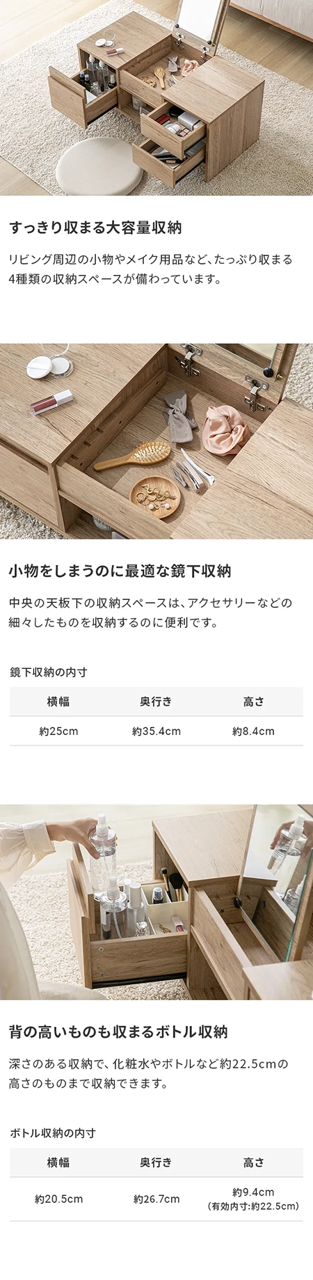 ミラー 大容量 美容 コスメ リビングメイク収納 コスメ収納 コスメテーブル コンパクト かわいい 白 ナチュラル モダン シンプル メイク道具 おしゃれ