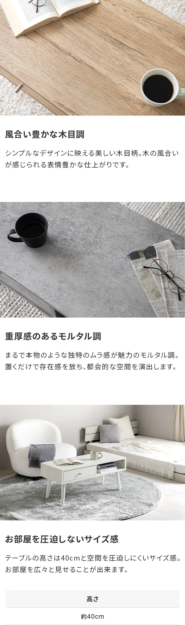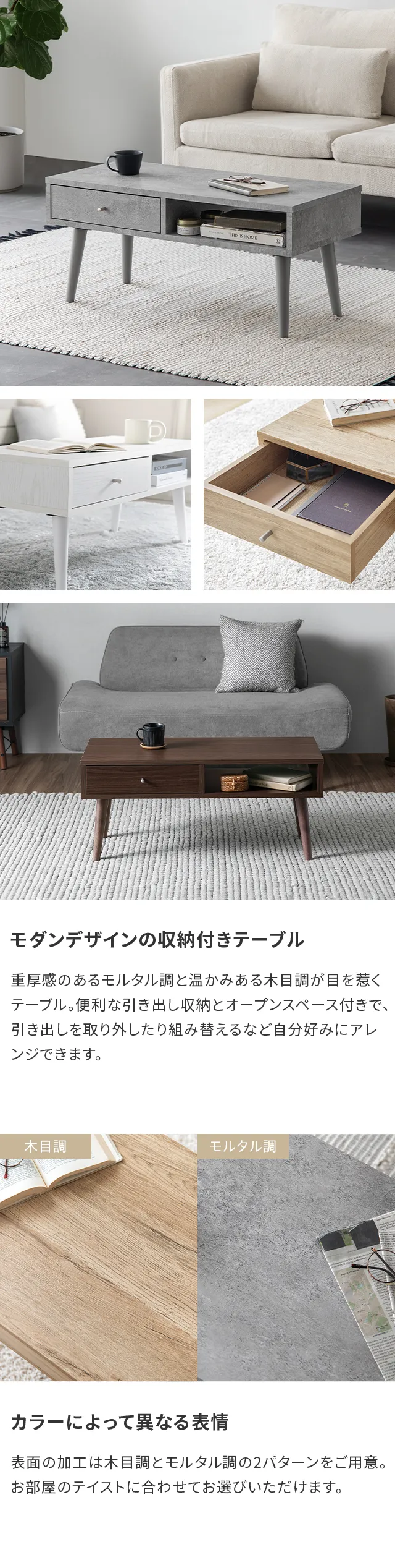 テーブル ローテーブル セラミック調 北欧 収納 モダン シンプル センターテーブル 木製 おしゃれ 家具 リビングテーブル 1人暮らし 引き出し付き 土日祝