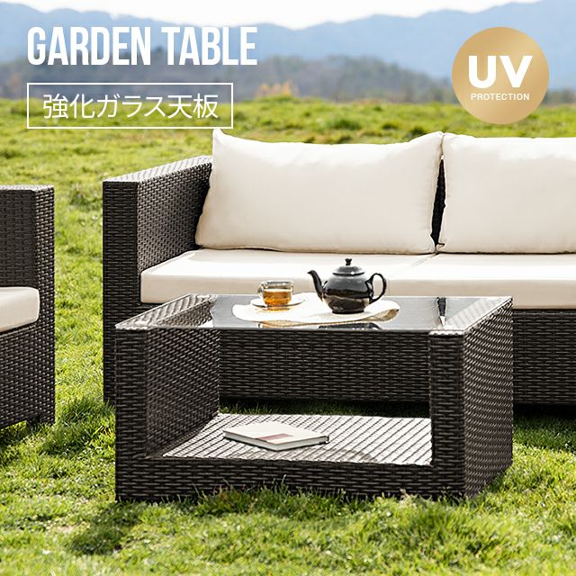 【3ヵ月保証】 ガーデン用テーブル ガーデン家具 80×50cm ラタン調ガーデンテーブル