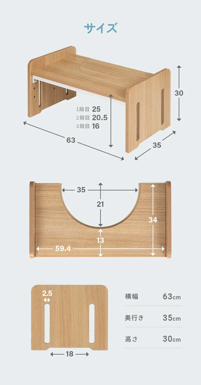 ステップ高さ…約 250 / 205 / 160㎜(3段階調節)