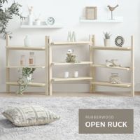 可動式オープンラック 天然ラバーウッド製