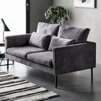[幅153cm・コンパクト広々] 2人掛けモダンソファ ブラックスチール脚 ホテルライク 高級感