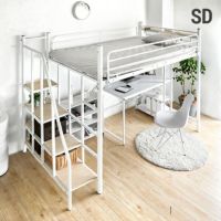 [セミダブル] ロフトベッド 階段タイプ USB+コンセント 多機能ヘッドボード 大容量収納 パイプベッド